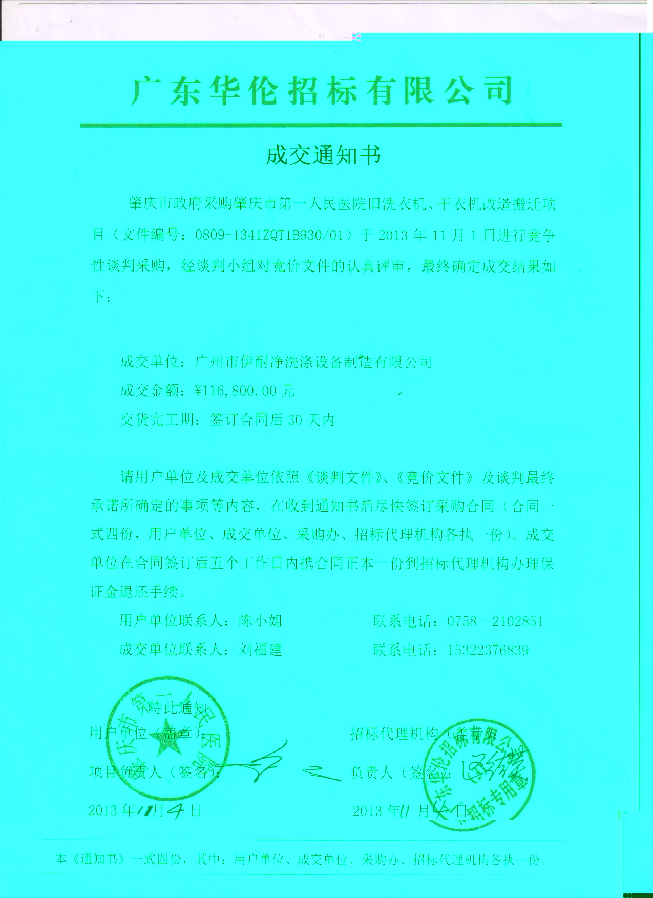 肇慶市人民洗衣房設(shè)備項(xiàng)目中,廣州伊耐凈洗滌設(shè)備制造有限公司,技?jí)喝盒?,脫穎而出,以116800元價(jià),成功中標(biāo)。